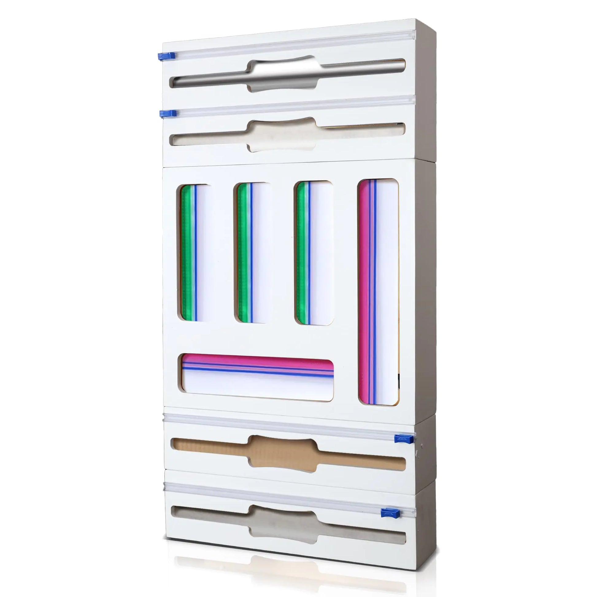 [KITCHEN ORGANIZATION: Agilily Organizers are the perfect Kitchen Storage Organizer solutions with their ability to securely store anything from ziplock bags to plastic wrap and foil. *Please be sure that your drawer is at least 3.5" (inches) high to accommodate cutters on top of dispensers. Ziplock organzier is 3" but overall height of 3.5" may be too tall for some drawers. UNIQUE DESIGN: Our new design accommodates larger wholesale store rolls up to 12" x 3.5" with 2 larger dispensers. Bag organizer compatible with many sizes perfect pantry organization. *Please be sure that your drawer is at least 3.5" (inches) high to accommodate cutters on top of dispensers. Ziplock organzier is 3" (inches) but overall height of 3.5" (inches) may be too tall for some drawers. MADE WITH 100% BAMBOO: This storage bag organizer is strong and sturdy for long-lasting use. It is perfect for kitchen organizers and storage drawers in homes and restaurants alike. MODULAR AND FLEXIBLE DESIGN: The plastic bag organizer fits into a drawer sits on the counter or hangs on the wall with ease. It makes organizing your kitchen pantry storage easier than ever before! "WHATS INCLUDED: 5-slot zip lock bag organizer 4 foil and wrap dispensers and 4 built-in slide cutters. Labels and mounting hardware."]