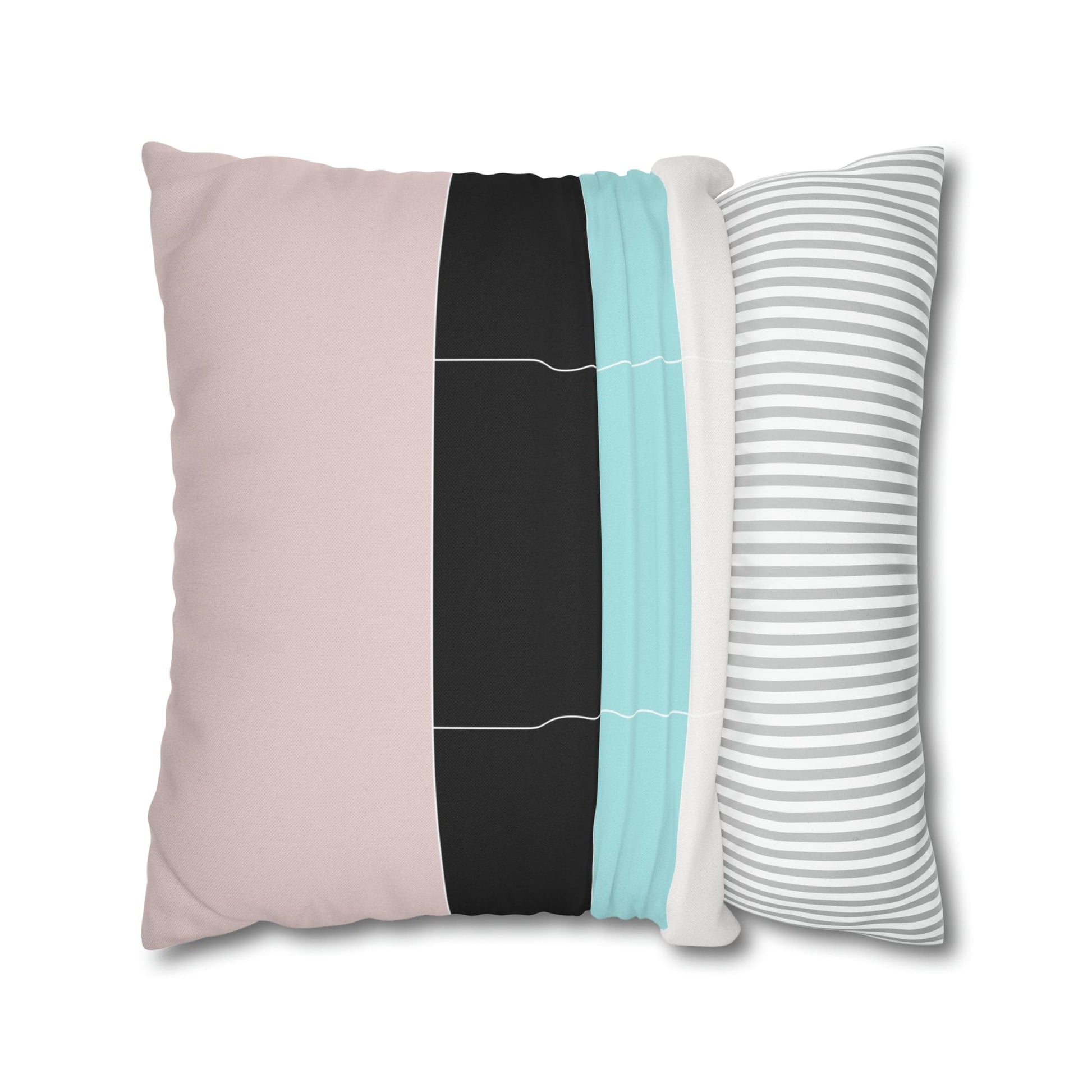 Decorative Throw Pillow Cover - Pastel Pink Black Blue Stripes
