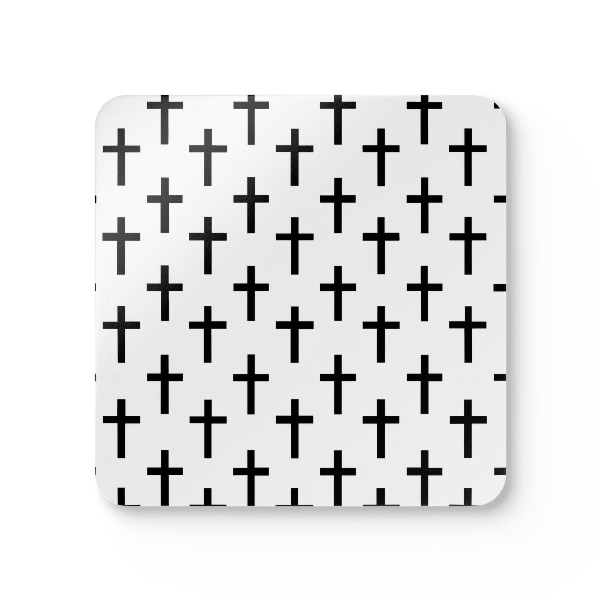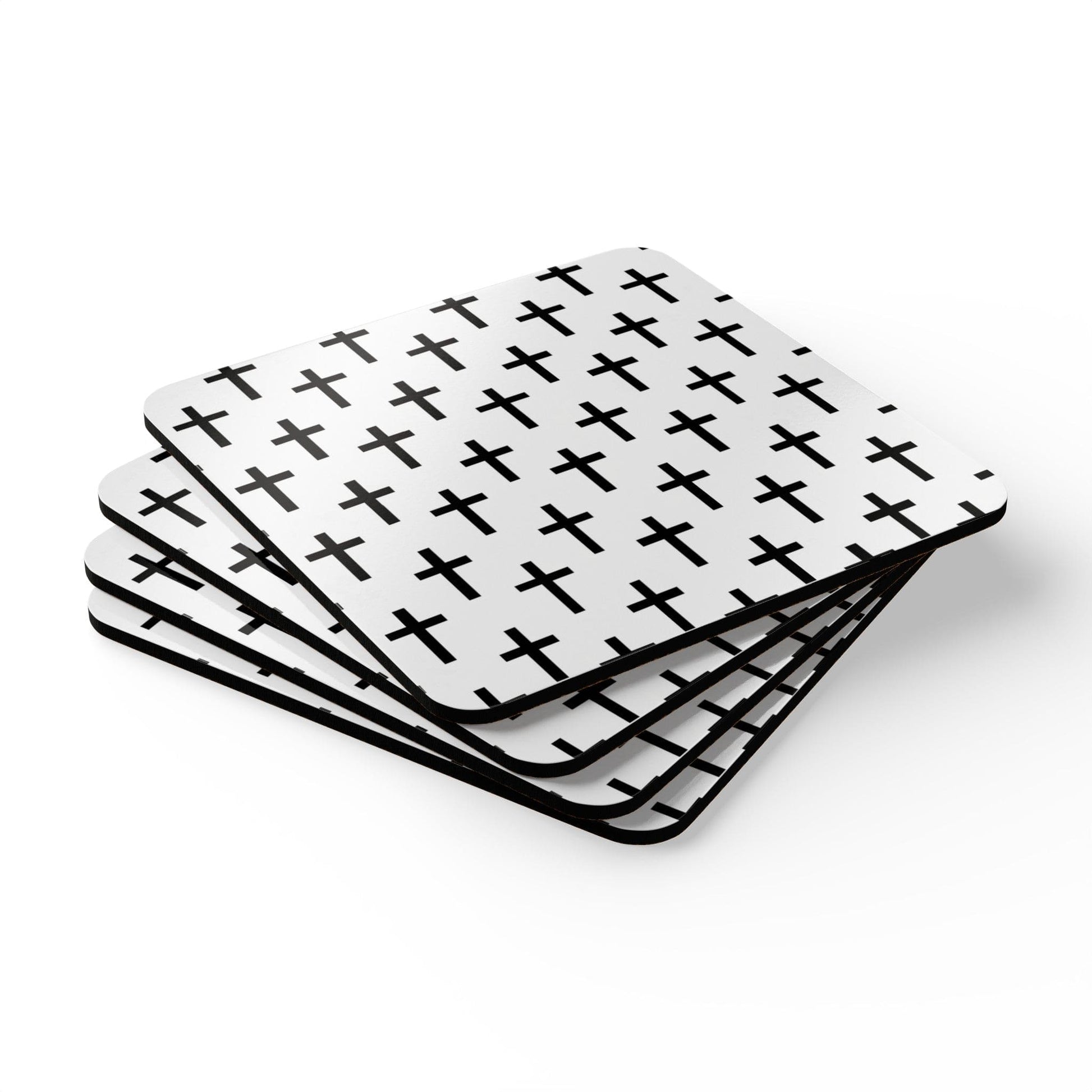 Handcrafted Square Coaster Set of 4 White Black Cross Print